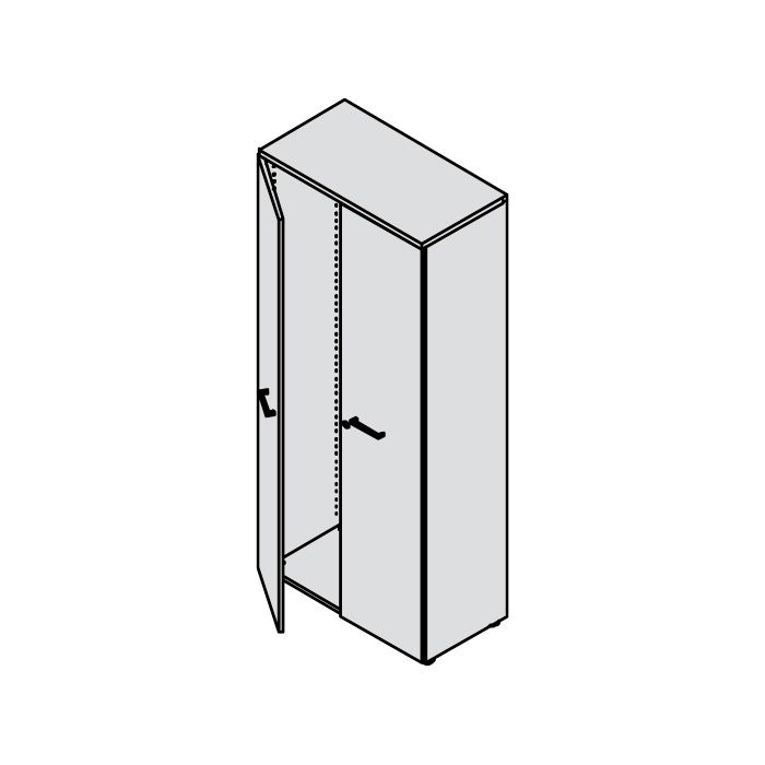 Шкафы: высотой 182 см; фурнитура для плавного закрывания дверей.