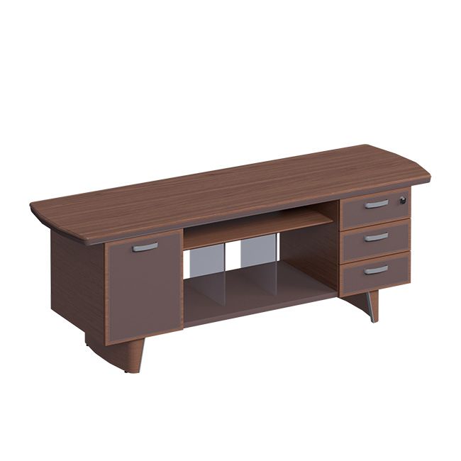 По запросу в торце столешницы возможна установка выдвижного лоточка для канцелярских принадлежностей; В опоре стола возможна установка обтянутого кожей ящика-секретера с электронным замком (с пультом управления) или простым ключом. Боковые приставки могу быть оборудованы механизмом подъема/опускания монитора.