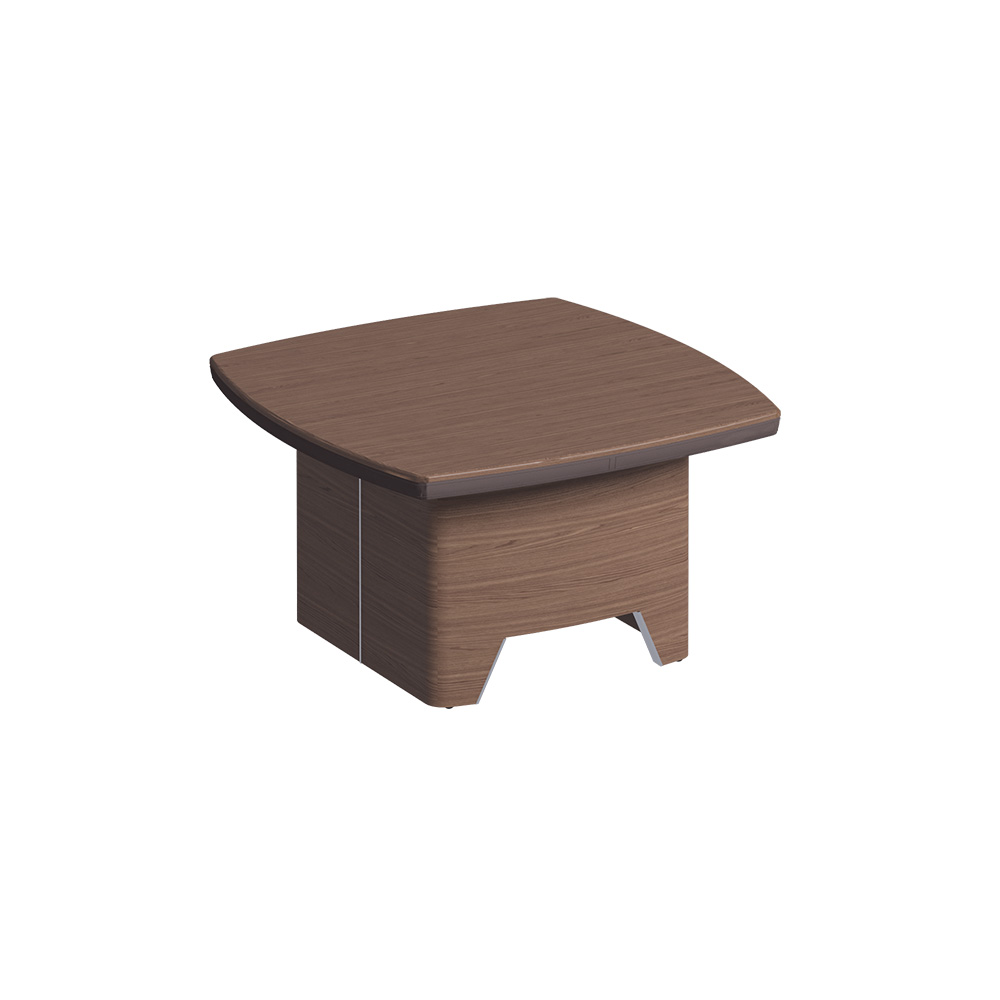 Журнальный столик, столешница шпон, металл. вставки в опоре 80x80x44 кожа коричневая