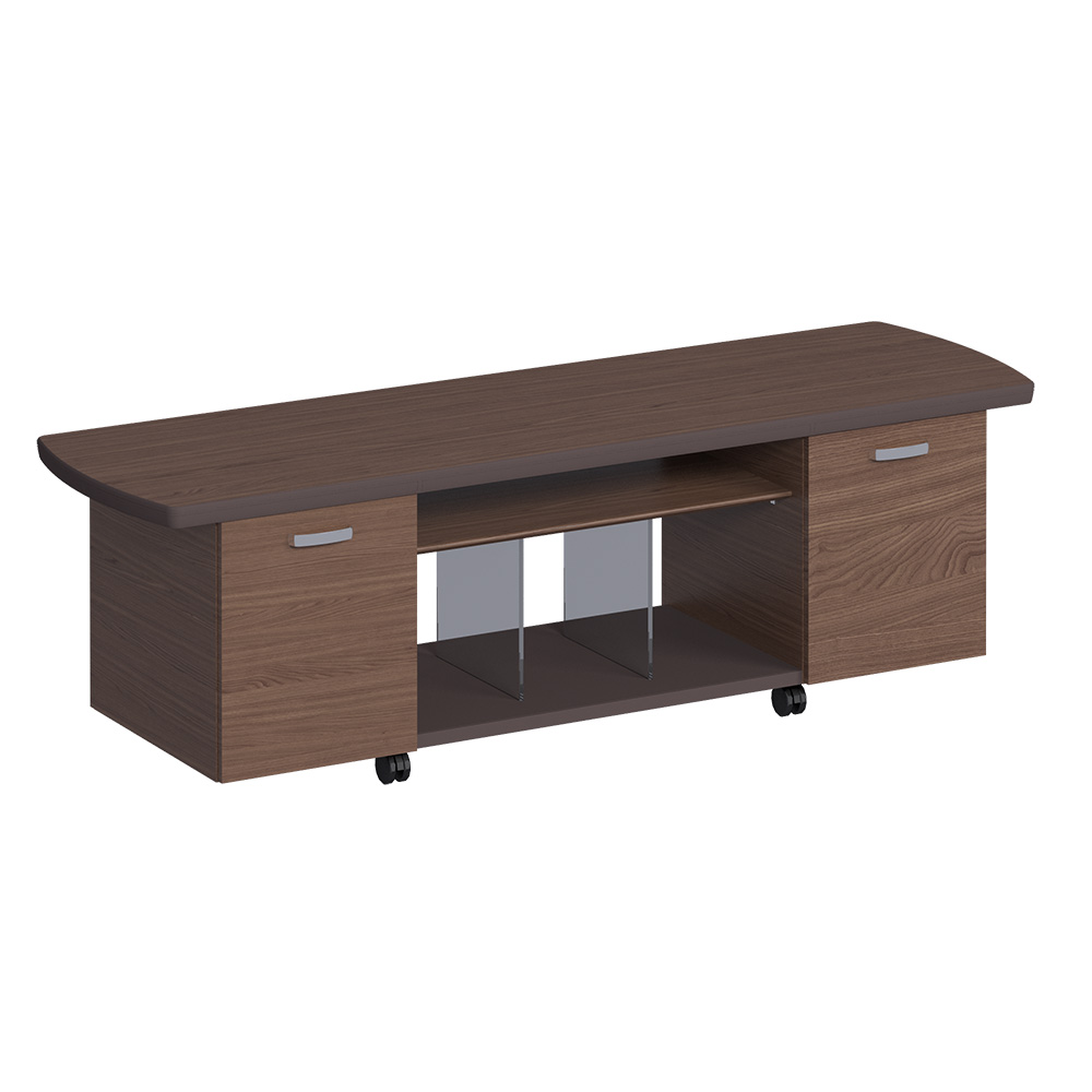 Греденция на колесах 2 деревянные двери, полка стекло, топ дерево 200x60x62 кожа под серебро