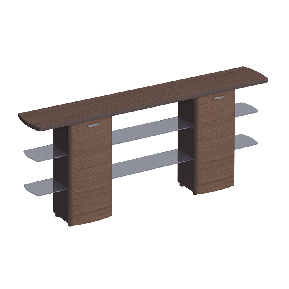 Шкаф - консоль топ и раздвижные дверки в дереве, 2 стекл. полки 290x48x116 ясень