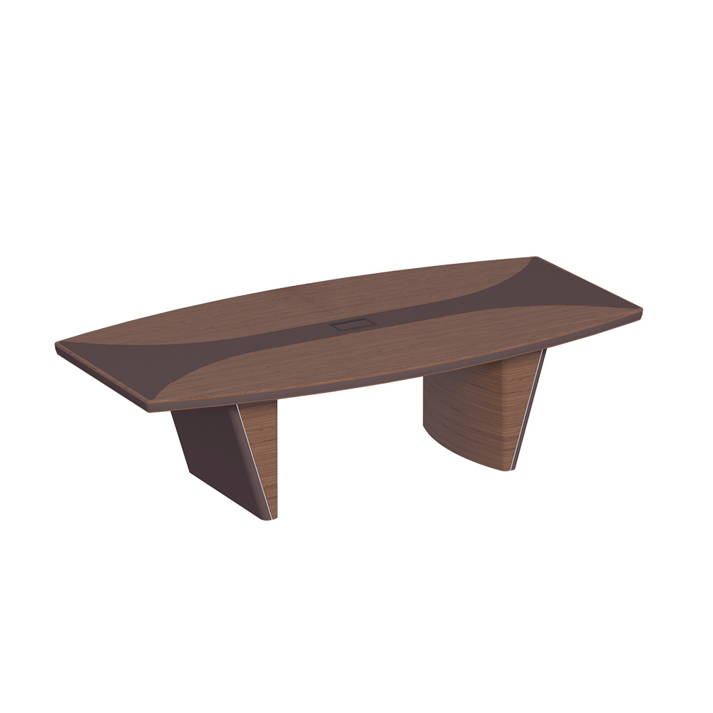 Топ и опоры дерево, кромка, внешняя часть опор и центр. часть стола в коже; 1 кабель -канал, на 8 мест