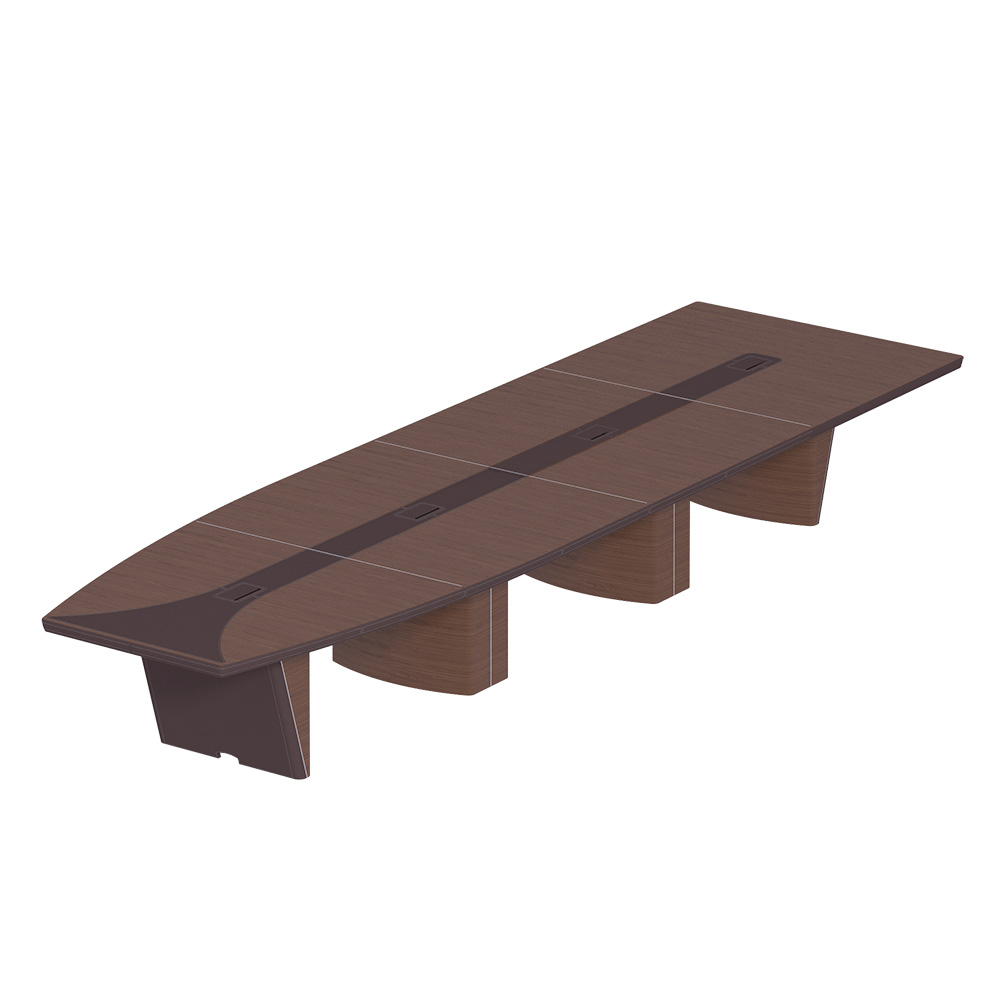2 колонны, топ и опоры дерево; мет. вставка; кромка, внешняя часть опор и центр. часть стола в коже; 4 кабель -канала, на 18 мест