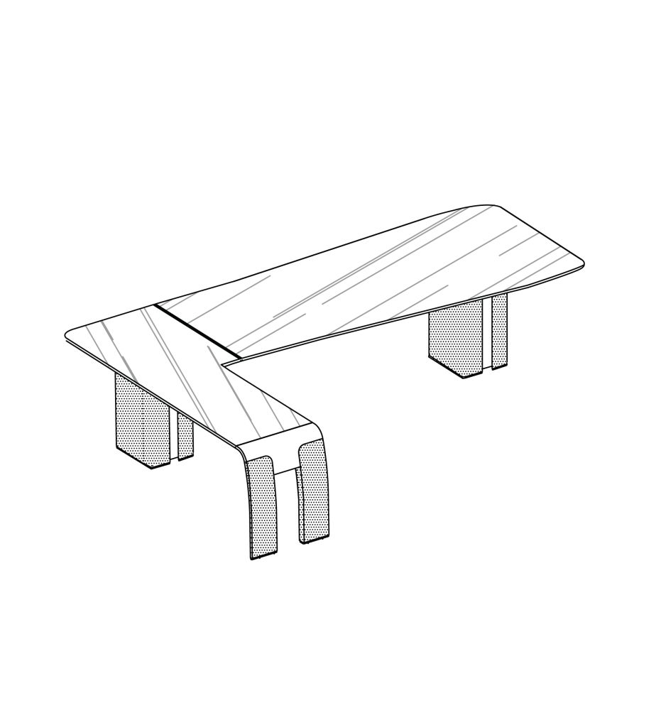 Стол на колоннах с левой боковой приставкой шпон и кожа 333x230x75 эбеновое дерево