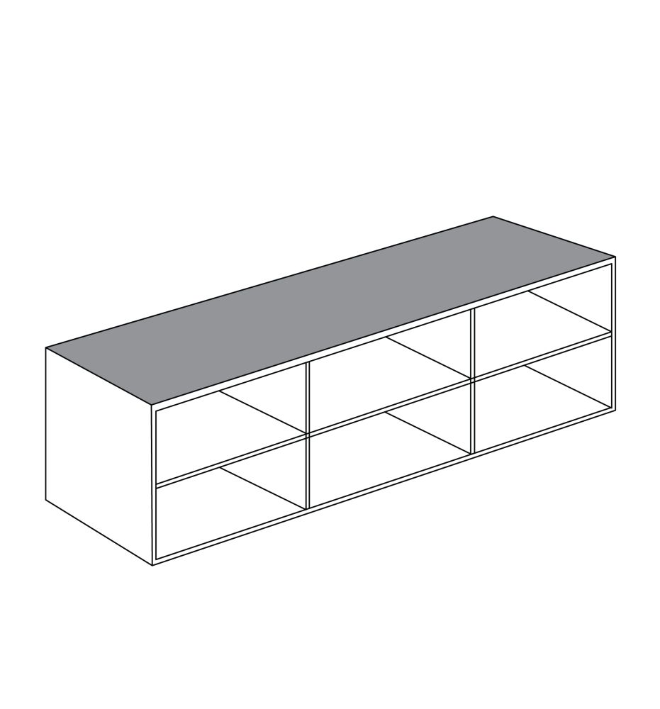 Тройной открытый шкаф лакированный каркас с 1 полкой 275x50x84.6 кожа темно-бордовая