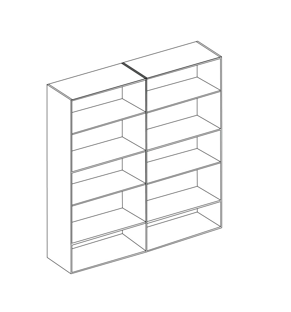Двойной открытый шкаф лакированный 4 полки 180x45x202 кожа темно-коричневая