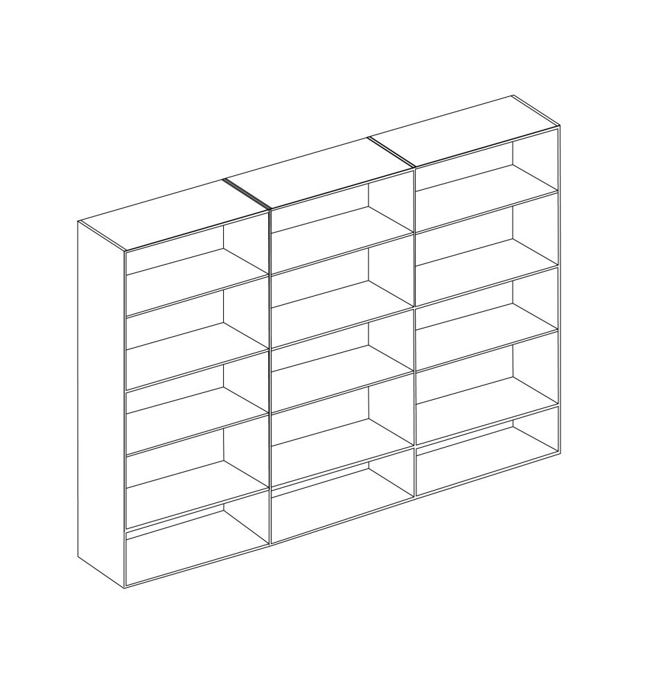 Тройной открытый шкаф лакированный каркас 4 полки 270x45x202 эбеновое дерево