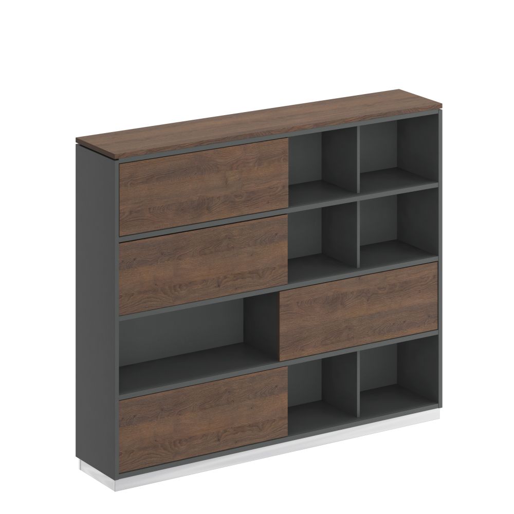 - Каркас шкафа состоит из 2-х секций для документов с 3-мя фиксированными по высоте полками в каждой секции.