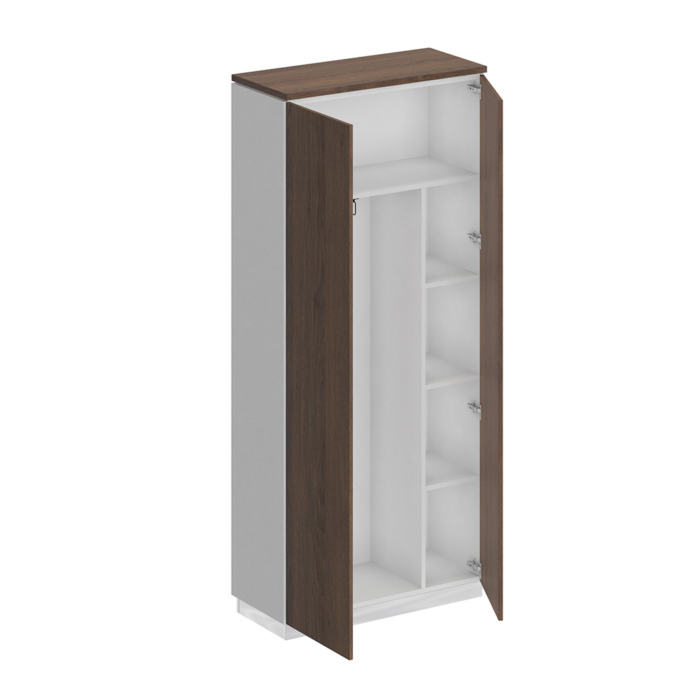 - Внутреннее пространство шкафа разделено вертикальной перегородкой на 2 секции.