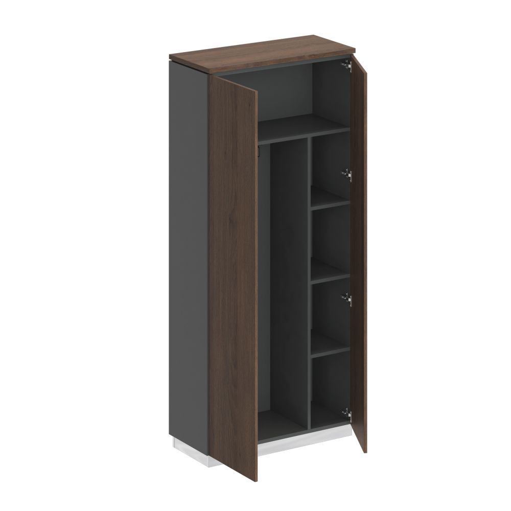 - Внутреннее пространство шкафа разделено вертикальной перегородкой на 2 секции.