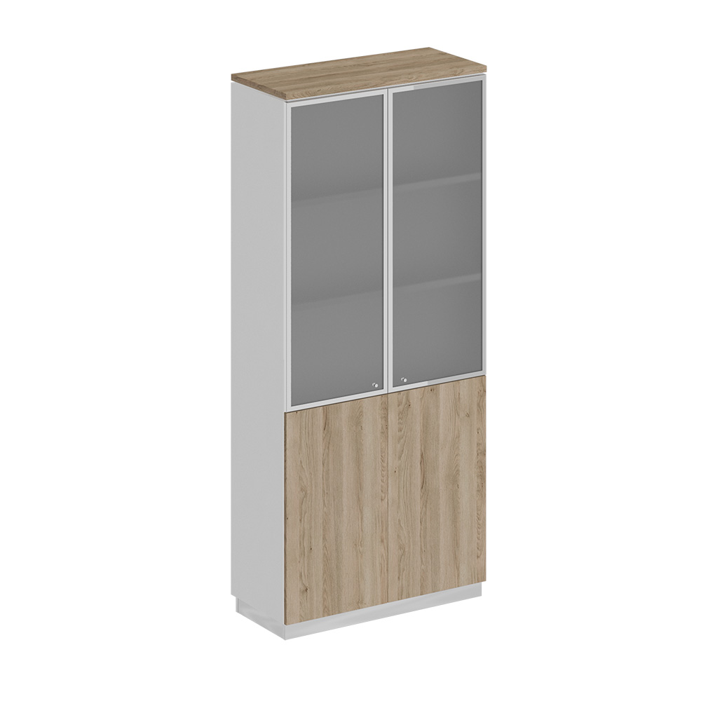 Шкаф для документов со стеклянными дверьми 90x40x203.4 дуб гладстоун светлый / белый премиум / дуб гладстоун светлый
