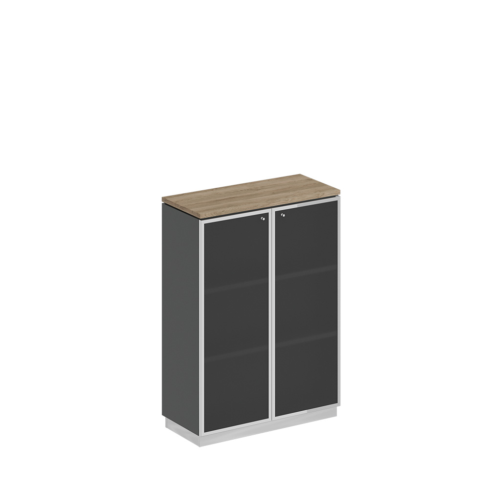 • Шкаф укомплектован двумя дверями со стеклом в металлической рамке без замка.