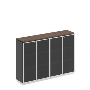 - Шкаф укомплектован четырьмя дверями со стеклом в металлической рамке без замка.