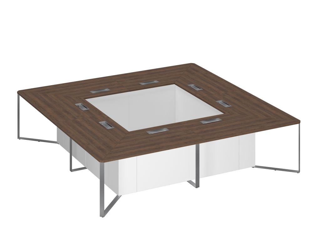 - Наличие прямоугольного проема в каждом сегменте столешницы, закрытого декоративной металлической заглушкой для скрытого размещения проводки.