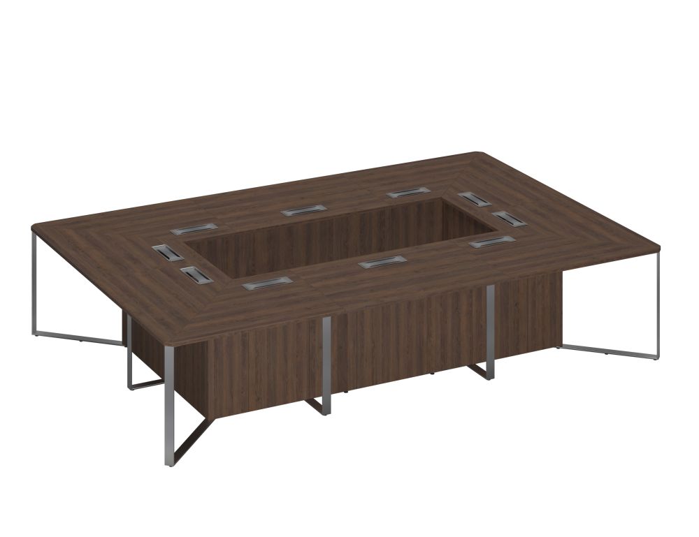 - Наличие прямоугольного проема в каждом сегменте столешницы, закрытого декоративной металлической заглушкой для скрытого размещения проводки.