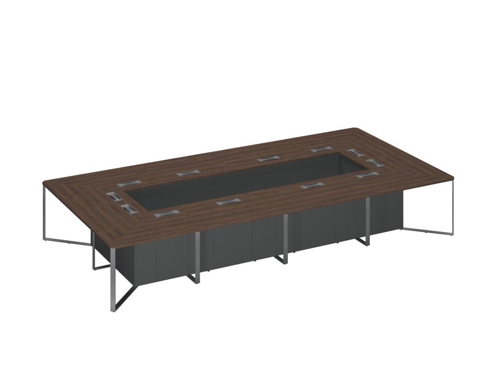 - Наличие прямоугольного проема в каждом сегменте столешницы, закрытого декоративной металлической заглушкой для скрытого размещения проводки.