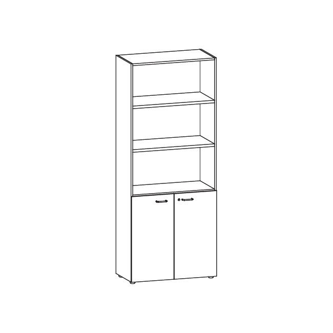 Шкаф высокий низ дерево верх открытый 86x45x214 орех каналетто/белый