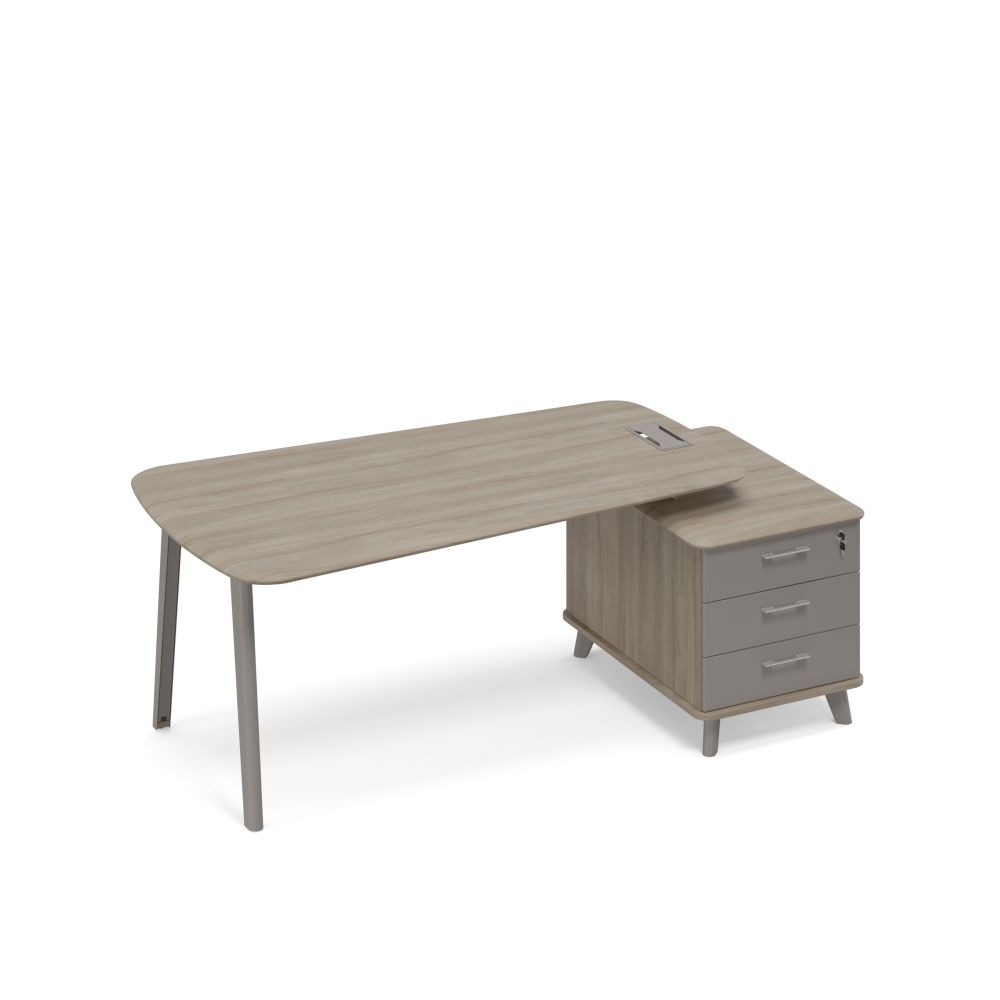 - Конструкция стола предусматривает правое/левое расположение опорной тумбы.