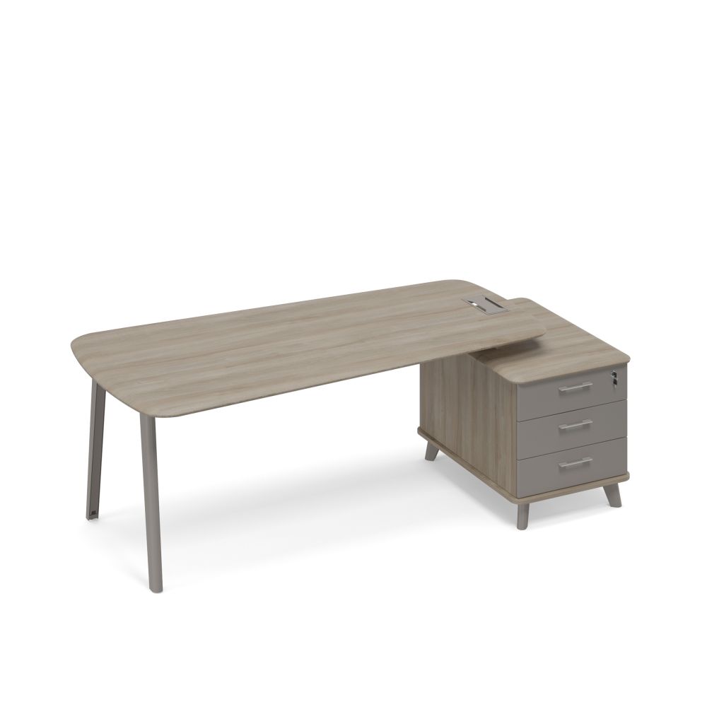 - Конструкция стола предусматривает правое/левое расположение опорной тумбы.