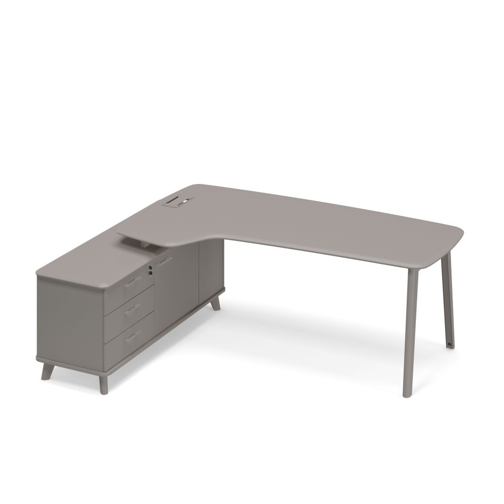 - Столешница стола укомплектована металлической заглушкой кабель-канала для быстрого доступа к коммуникациям.