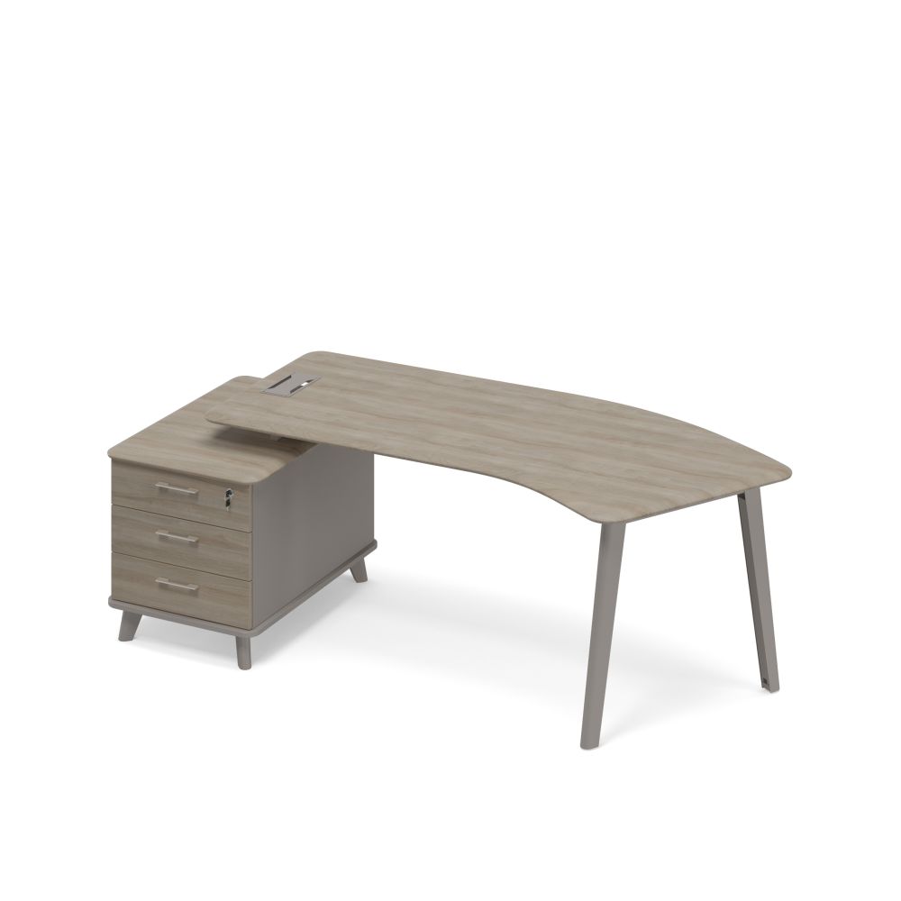 Стол руководителя эргономичный на опорной тумбе малой левый (тип 5) 225.8x100x75.6 мокко премиум (корпус) / вяз либерти (столешница, топ, фасад)