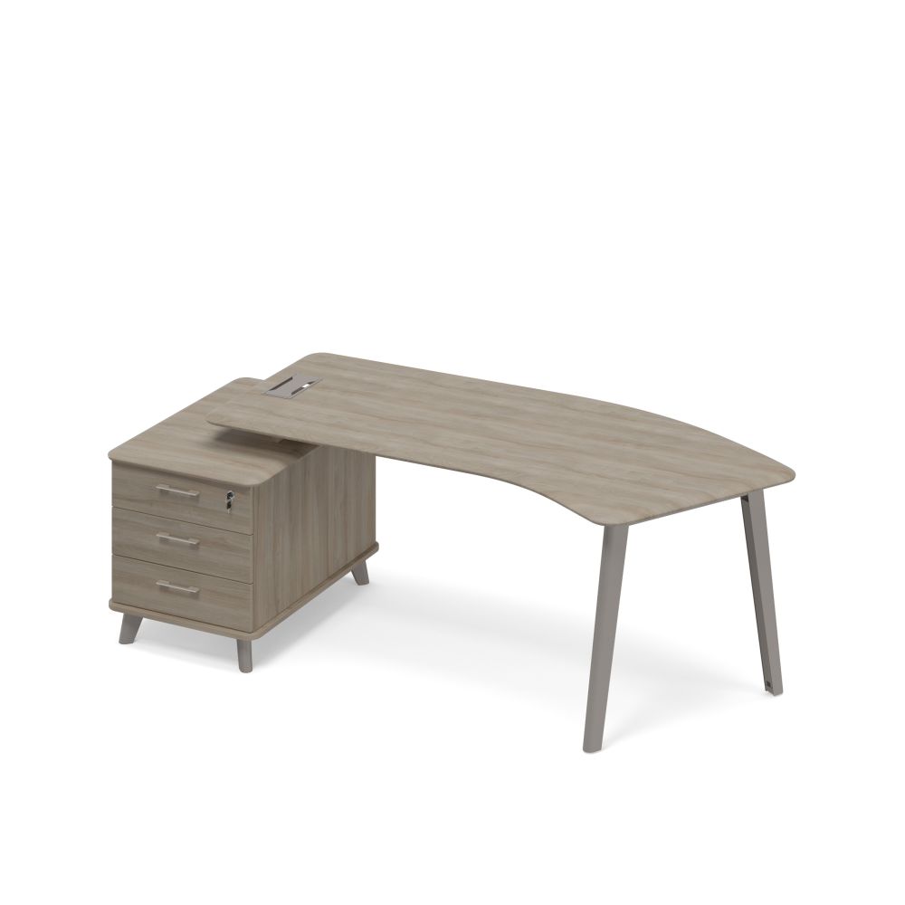 Стол руководителя эргономичный на опорной тумбе малой левый (тип 5) 225.8x100x75.6 вяз либерти