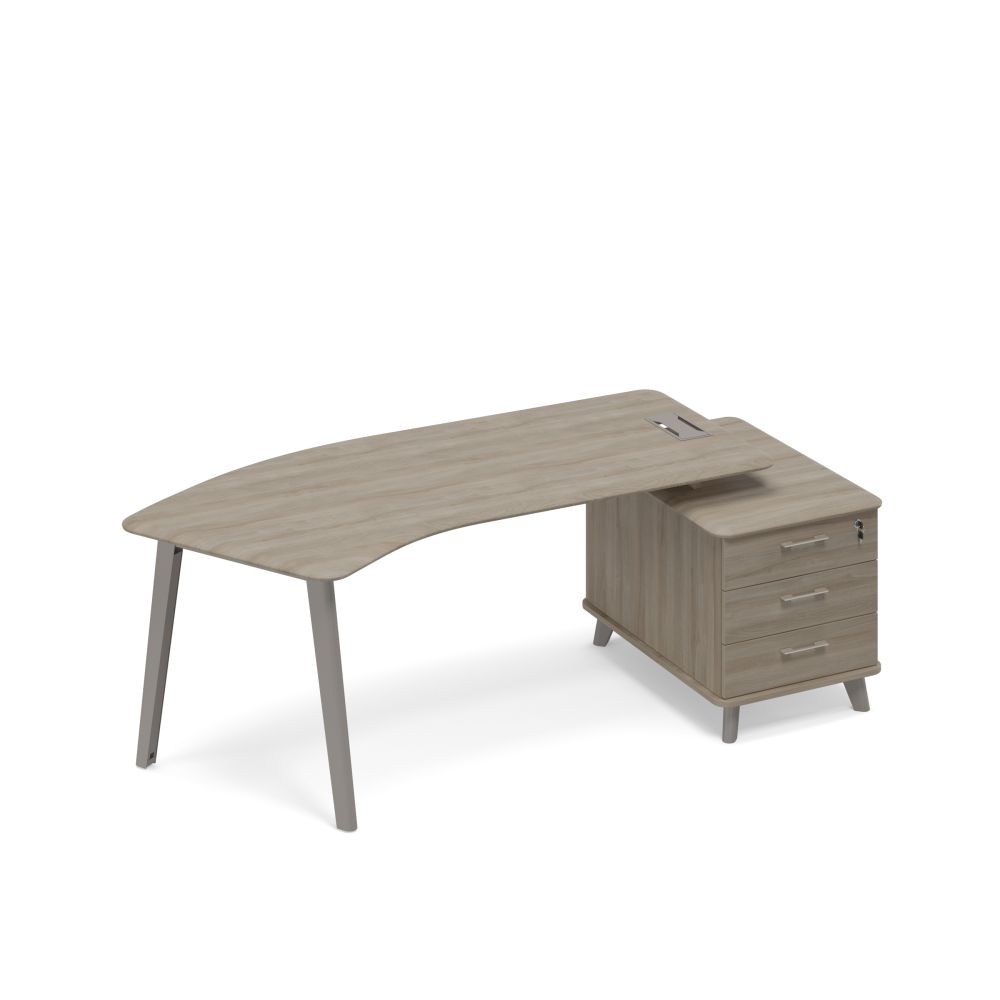 Стол эргономичный на тумбе малой правый (тип 5) 225.8x100x75.6 вяз либерти