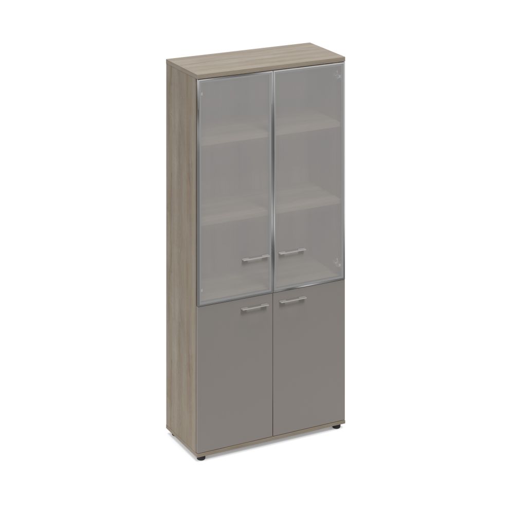 - Шкаф укомплектован двумя стеклянными дверями в алюминиевой рамке и двумя дверями из ЛДСтП без замков