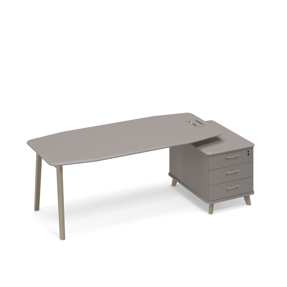 - Конструкция стола предусматривает правое/левое расположение опорной тумбы.
