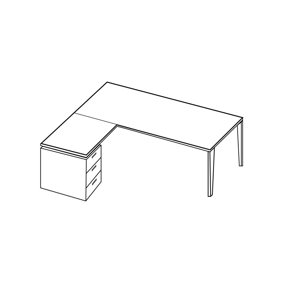Стол L-образный с левой приставкой на тумбе 4-ящика 180x190x75 вяз