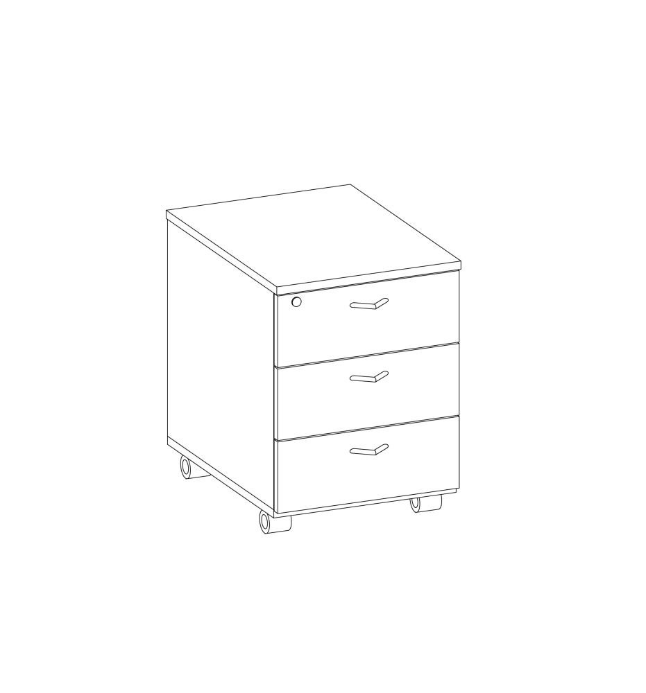 Тумба выкатная, 3 ящика ПВХ с доводчиками 42x56x58 серый