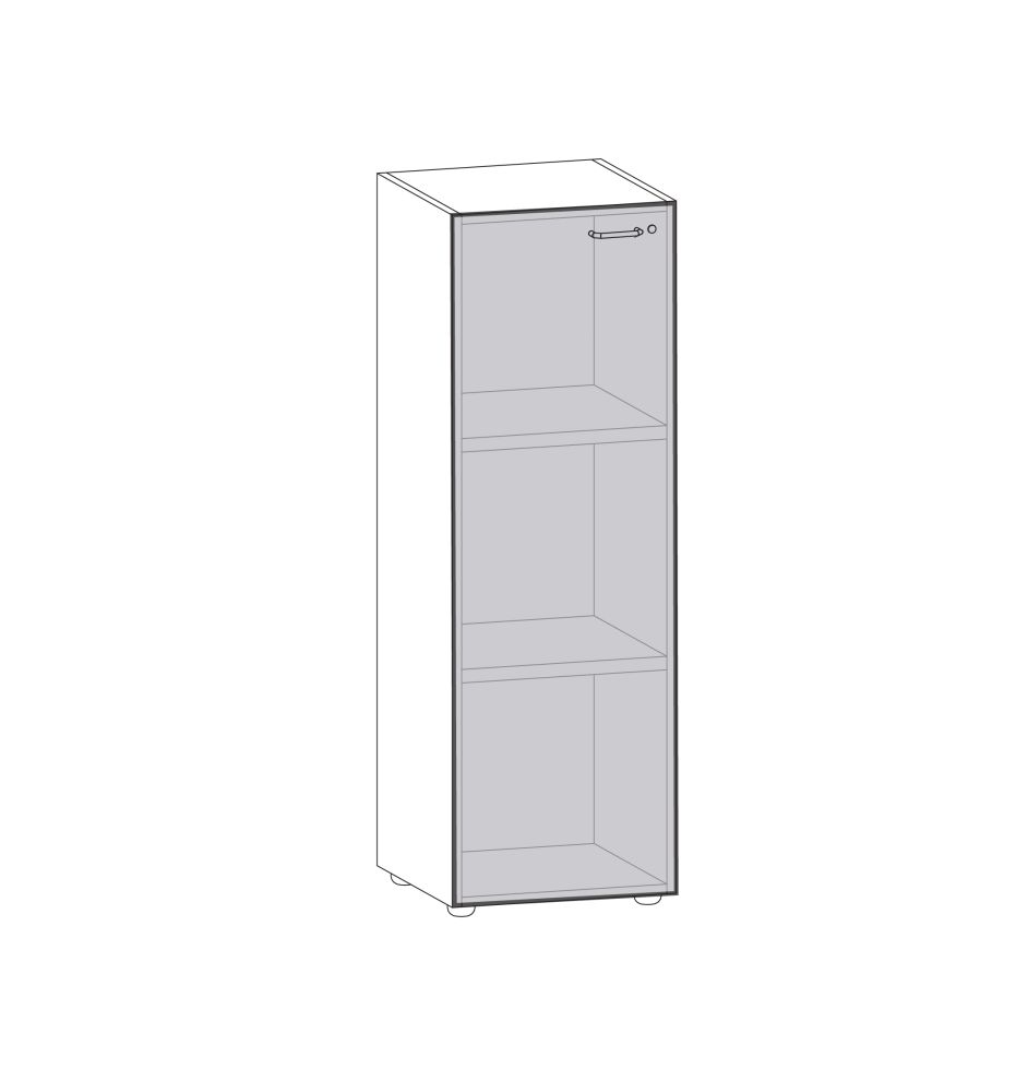Шкаф средний узкий закрытый со стеклом, рама алюм., левый 43x45x131 венге
