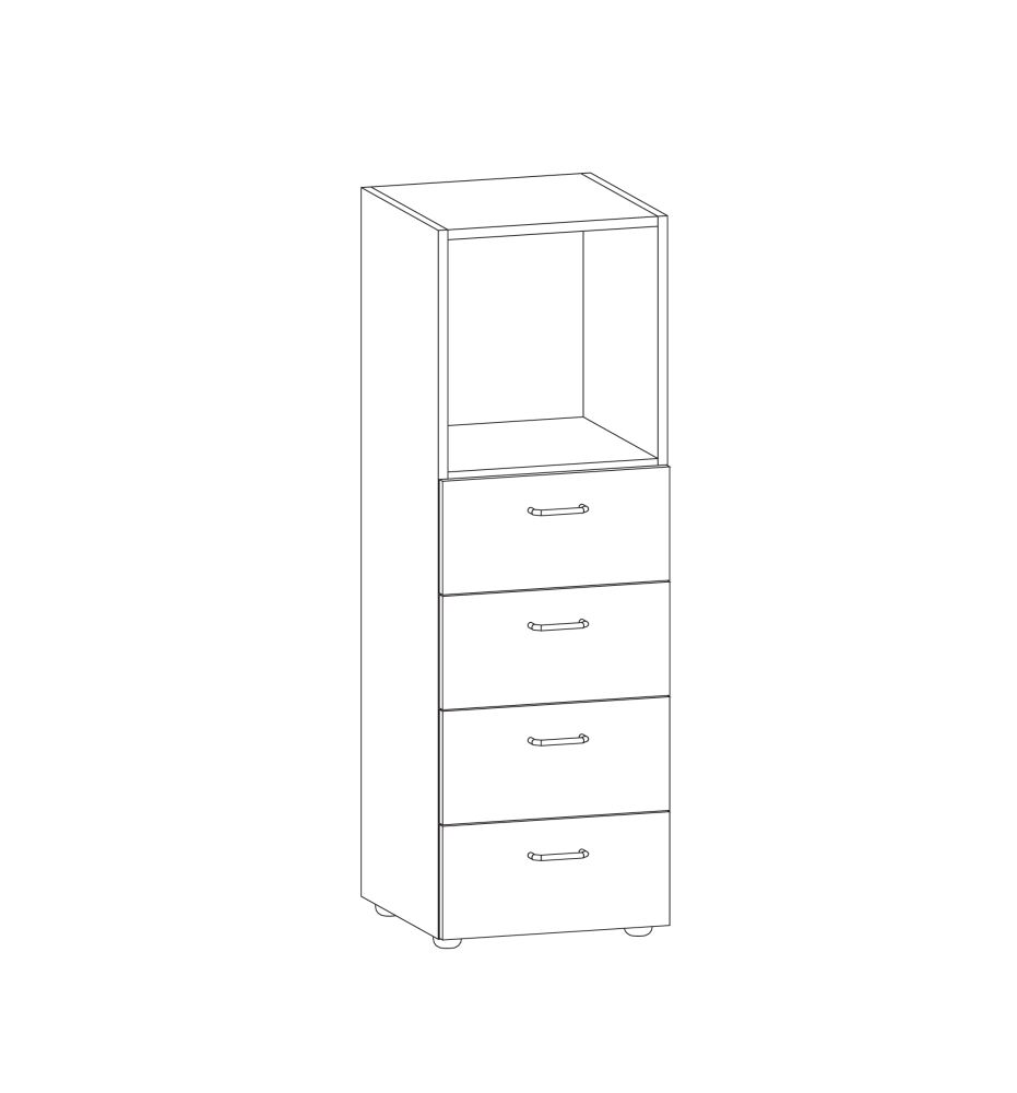 Шкаф средний узкий с 4-мя ящиками 43x45x131 бетон