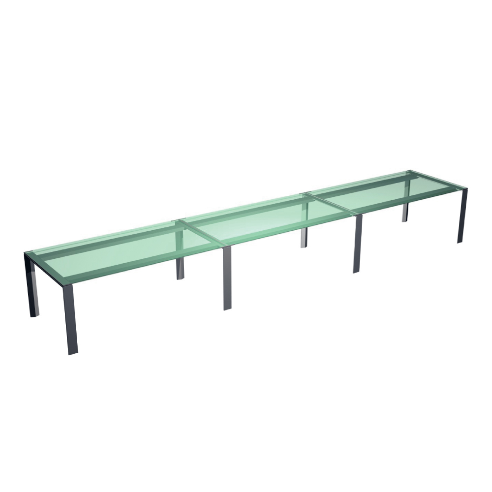 Стол для переговоров П-опоры, ноги-хром, стекло белое 420x140x72 стекло