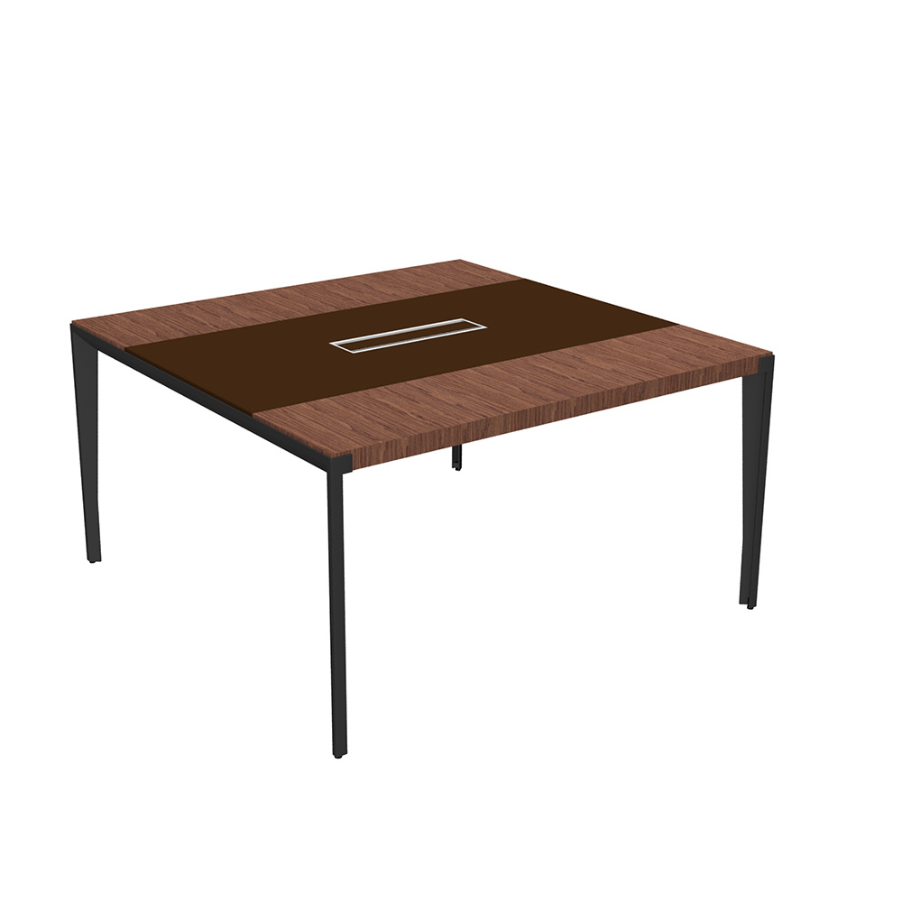 Стол для переговоров с кожаной вставкой 141x141x75 кожа коричневая