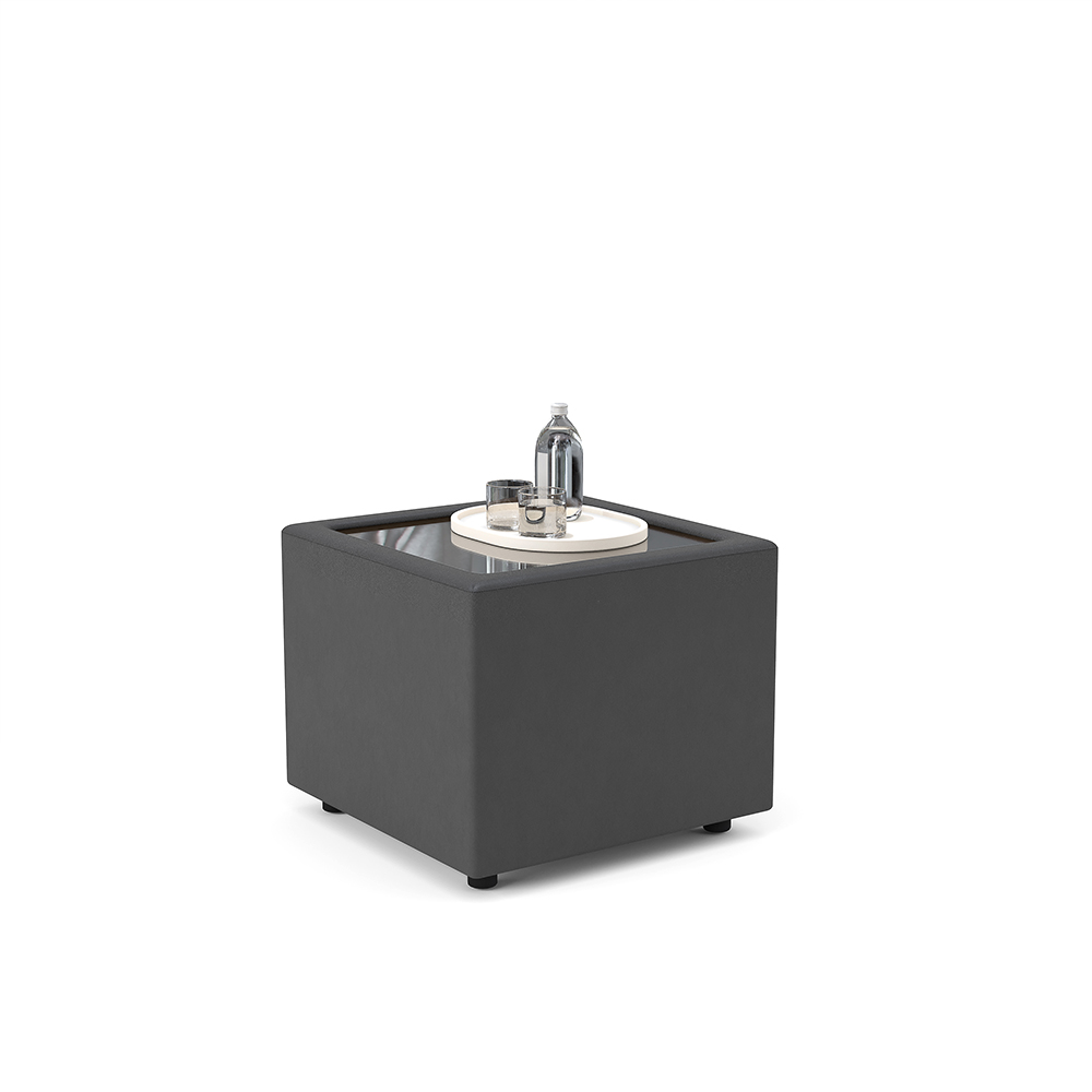 Стол журнальный со стеклом (экокожа) 61x61x51 экокожа премиум черная CN1114