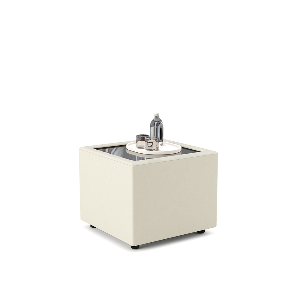 Стол журнальный со стеклом (экокожа) 61x61x51 экокожа премиум светло-бежевая CN1112