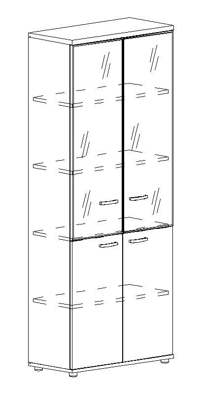 • Шкаф укомплектован двумя стеклянными дверями и двумя дверями из ЛДСтП без замков.