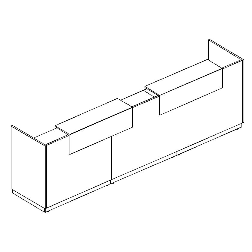 - Стойка ресепшен состоит из 3-х модулей, укомплектованных тремя столешницами длиной 120 см.