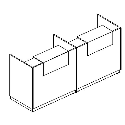 - Стойка ресепшен состоит из 2-х модулей с промежуточной опорой, укомплектованных двумя столешницами длиной 90 см.