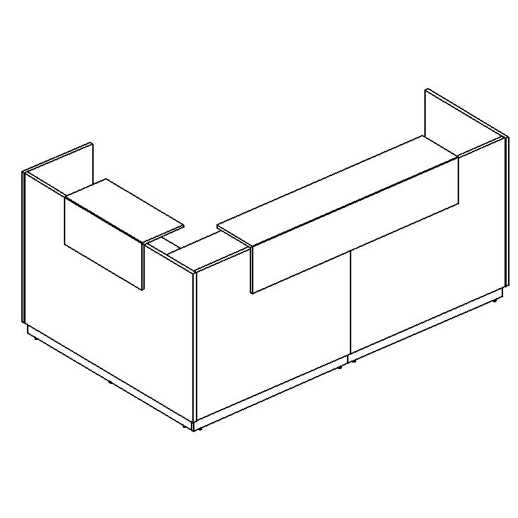 - Стойка ресепшен состоит из прямого модуля со столешницей длиной 120 см и углового модуля со столешницами 80 см (боковая) и 120 см.
