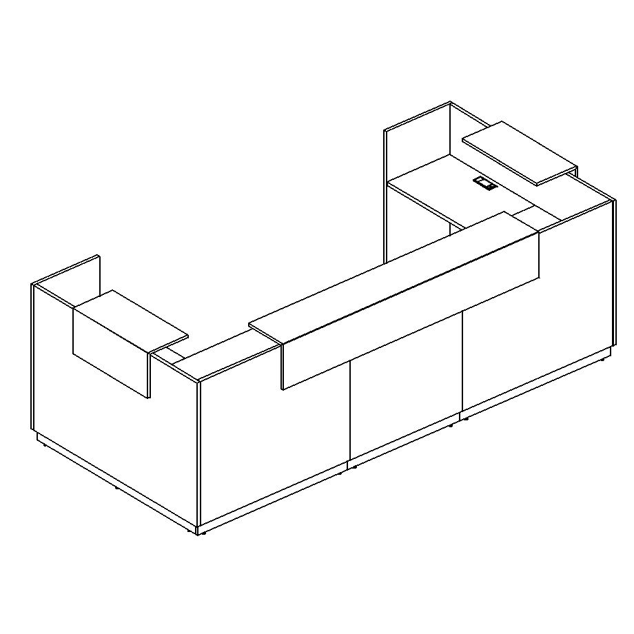 - Стойка ресепшен состоит из двух угловых модулей со столешницами 80 см (боковая) и 120 см и прямого модуля со столешницей 90 см.