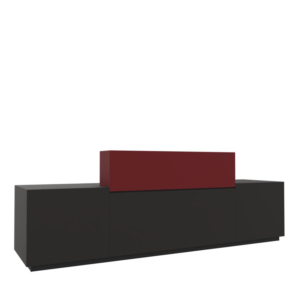 Z1 элегантный ресепшн с прямыми линиями и лакированными поверхностями. Две пересекающиеся поверхности, подсвеченные светодиодными лампами, обеспечивают визуальный эффект и зрительно разграничивают две рабочие зоны стойки. Подсветка является дополнительно опцией.