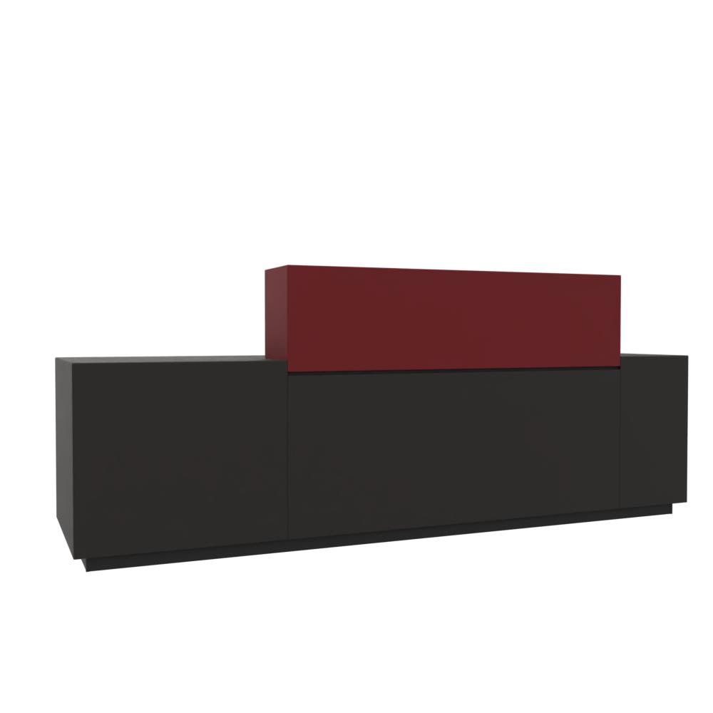 Z1 элегантный ресепшн с прямыми линиями и лакированными поверхностями. Две пересекающиеся поверхности, подсвеченные светодиодными лампами, обеспечивают визуальный эффект и зрительно разграничивают две рабочие зоны стойки. Подсветка является дополнительно опцией.