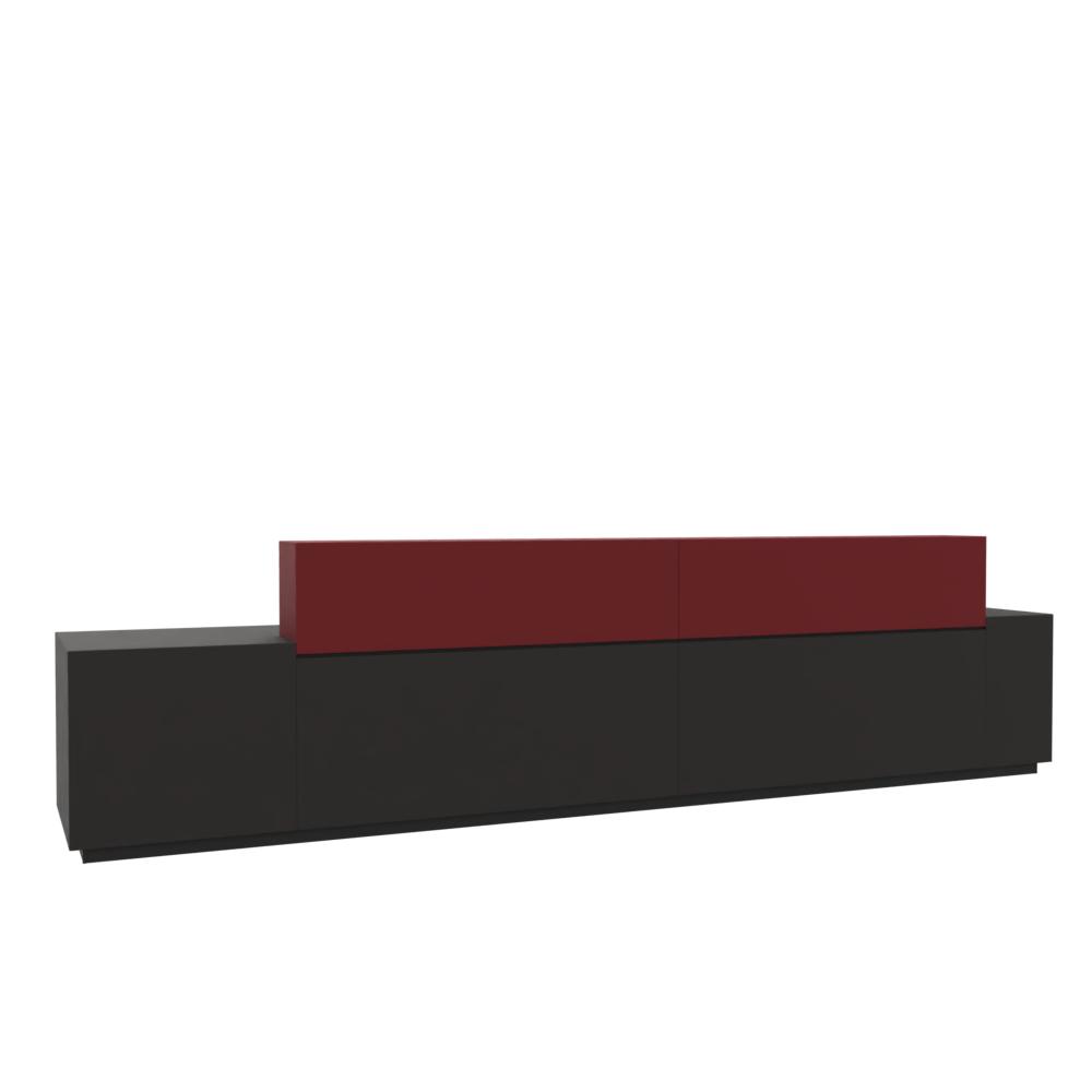 Z1 элегантный ресепшн с прямыми линиями и лакированными поверхностями. Две пересекающиеся поверхности, подсвеченные светодиодными лампами, обеспечивают визуальный эффект и зрительно разграничивают две рабочие зоны стойки. Подсветка является дополнительно опцией.