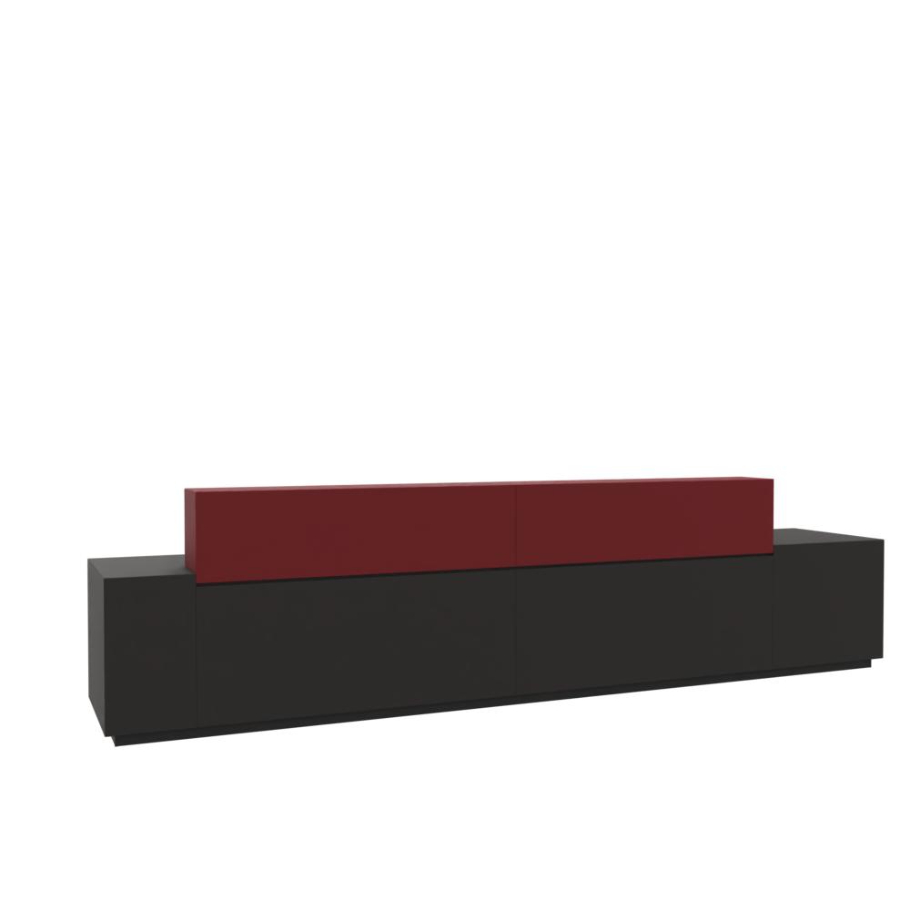 Z1 элегантный ресепшн с прямыми линиями и лакированными поверхностями. Две пересекающиеся поверхности, подсвеченные светодиодными лампами, обеспечивают визуальный эффект и зрительно разграничивают две рабочие зоны стойки. Подсветка является дополнительно опцией.