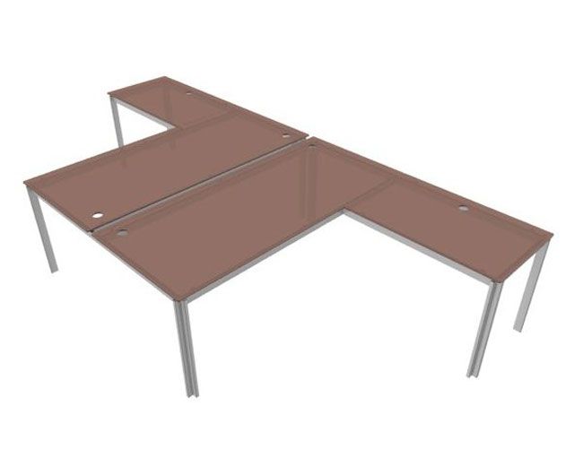 Композиция L-образных рабочих мест - 2 стола , стекло 140x324x71.5