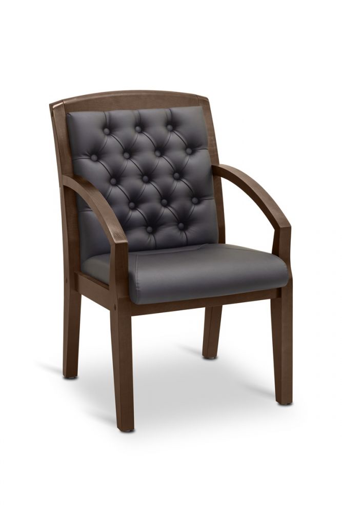 Кресло посетителя Граф+ с утяжкой экокожа премиум темно-серая CN1118/ дерево - орех гамильтон
