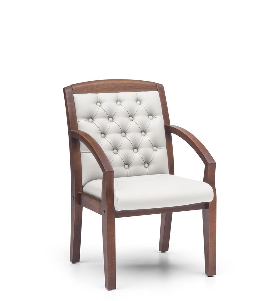 Кресло посетителя Граф+ с утяжкой экокожа премиум белая CN2 / дерево - дуб мелвилл