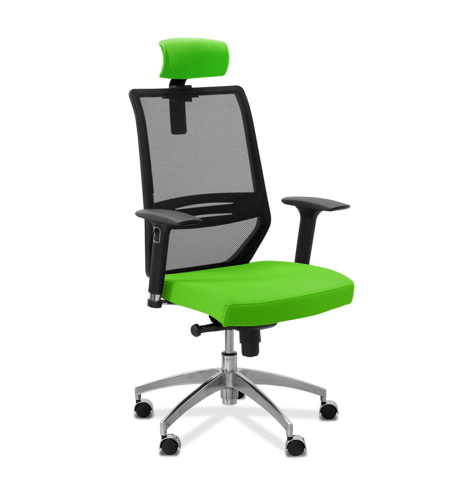 Кресло Aero 3D h с подголовником сетка/ткань TW черная B01/ салатовая